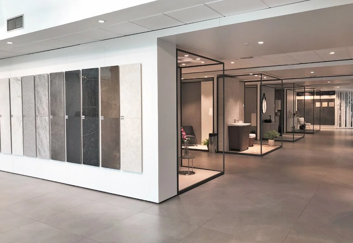 Tile stores carry a huge variety of colors, patterns, textures, and sizes. Walking through a showroom allows you to see and feel the materials in person, with their large displays which helps you make better design decisions than just browsing online.